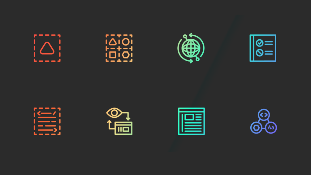 A free icon library for all your design systems needs. Use these in presentations, printed material, posters, and whatever else your heart desires in spreading the good word about design systems.